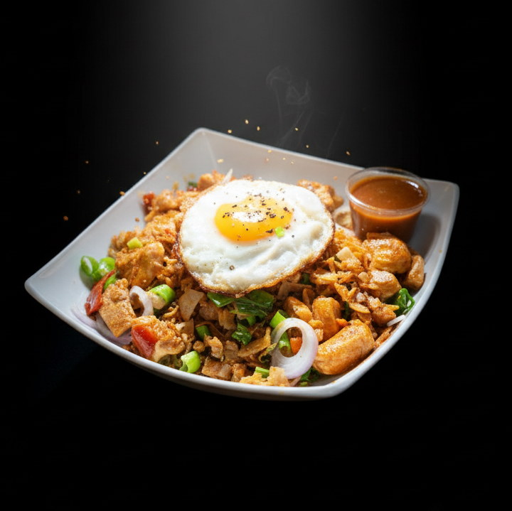 Stir-fried chopped parotta with carrots, white cabbage, leeks, onions, chilies, and egg.